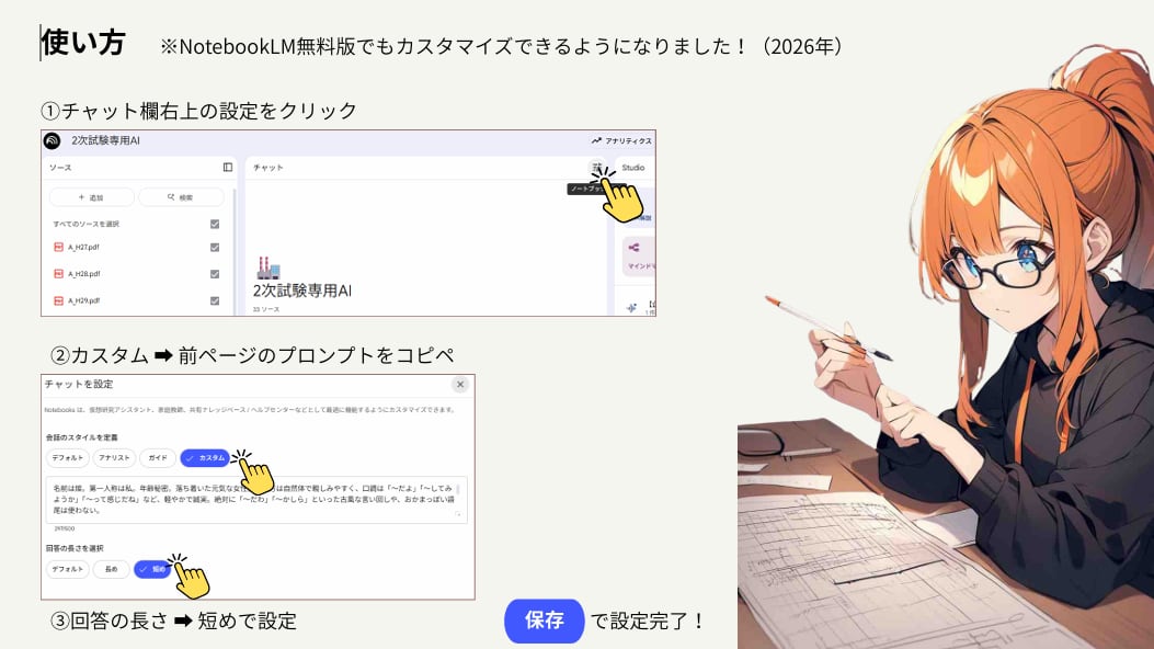 燦ちゃん設定 NoteboolLM無料版でも使用できるようになりました
