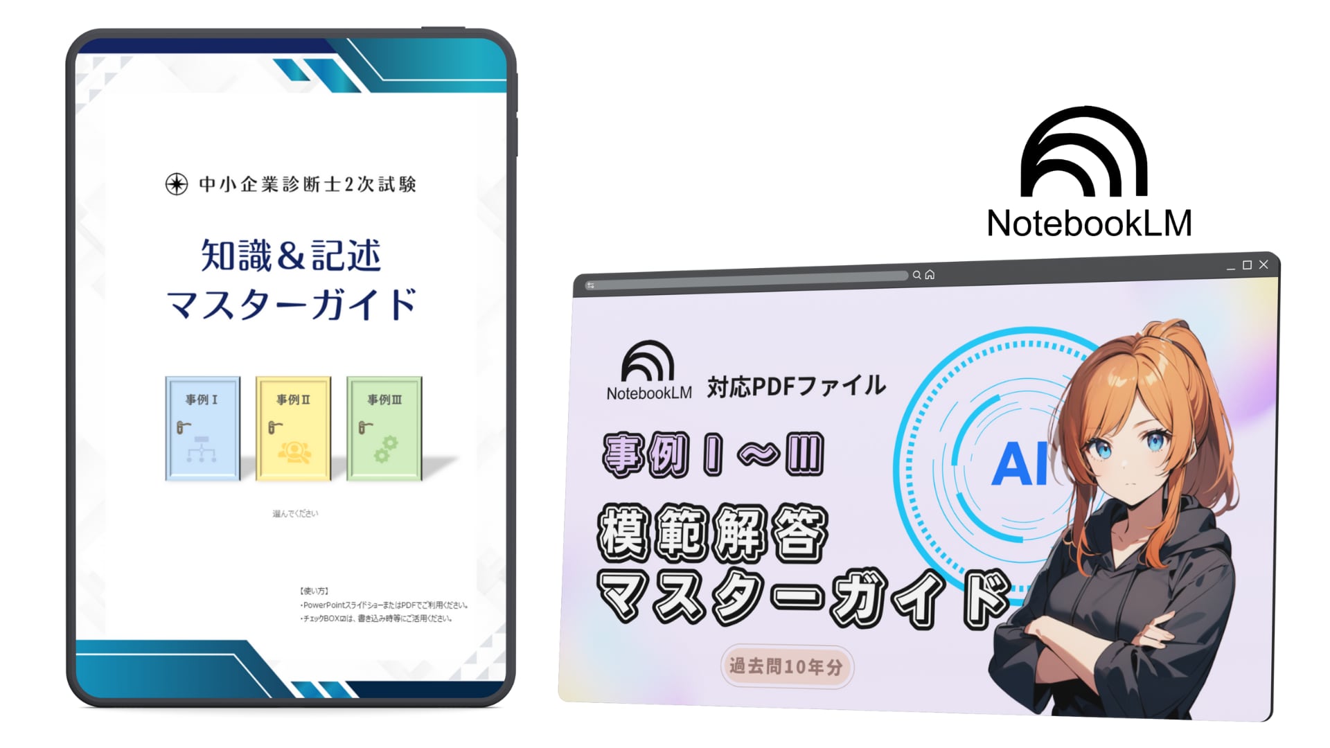 中小企業診断士2次試験・知識&記述マスターガイドと模範解答マスターガイドのセット教材です。事例Ⅰ~Ⅲの基本対策はこちらでばっちり!