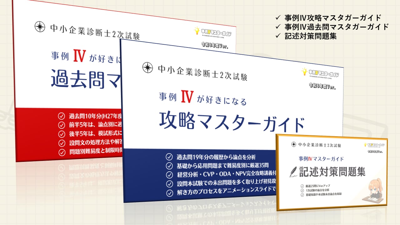 中小企業診断士2次試験・事例Ⅳマスターガイドのセット教材です。